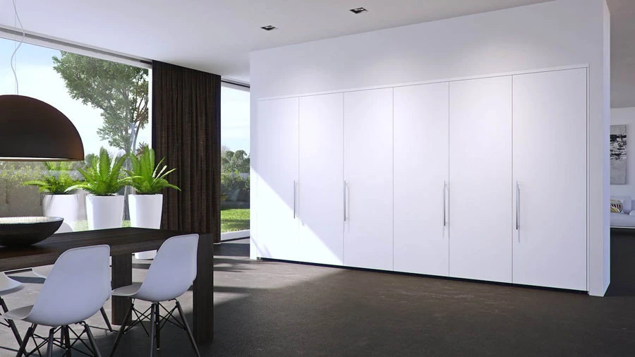 Sistema inovador para portas sanfonadas em quedaA tendência atual favorece locais de grande porte, ao invés de muitos ambientes pequenos. Com o novo mecanismo Hawa-Folding Concepta 25, esta tendência é attuabilit real, permitindo que você feche, em um movimento, quartos e móveis com largura de até 2800 mm Porta perfeitamente flush. Um mecanismo que abre a porta para uma variedade de soluções de design criativo: a partir do escritório de canto no quarto banheiro ou lavanderia no canto da cozinha para a sala, as possibilidades são ilimitadas configuração. Com Hawa-25 Folding Concepta possível para arrumar e recolher duas portas laterais, até 25 kg cada. É um sistema de economia de espaço inovador: um compartimento fechado portas estão ao mesmo nível da estrutura, enquanto que desaparecem em um nicho lateral, permitindo total acesso dentro do compartimento e uma perfeita liberdade de movimento na sala. A largura de nicho de apenas 110 mm, na verdade recebe o par de portas com uma perda de inserção de apenas 73 mm. A tesoura técnica extraordinária Hawa garante luz e movimento silencioso das portas e evitar possíveis problemas. O Hawa-Folding Concepta 25 não criar quaisquer dificuldades durante a montagem. A provisão para um par de portas inclui a tesoura ea pista de deslizamento. O alto grau de pré-montagem das portas, disponíveis em esquerda e direita, facilita e agiliza a montagem final no local. Binário eo perfil interior são front-montado de forma simples e rápida, mesmo no celular Th posicionado.